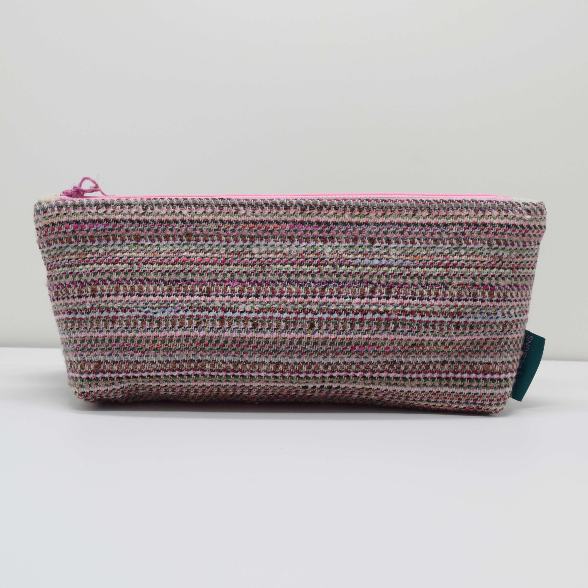 A handmade pouch woven on my table loom using 100% sheep soft British wool and fancy remnant yarns. This pouch is unique. Approx. 28cm x 13cm x 4cm
