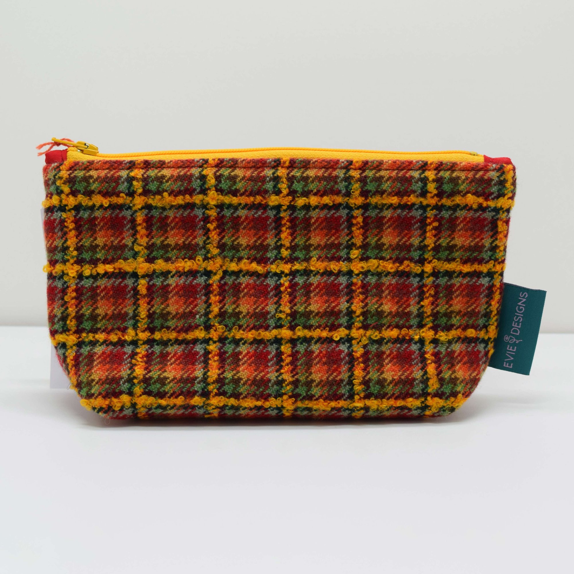 A handmade pouch woven on my table loom using 100% sheep soft British wool and fancy remnant yarns. This pouch is unique. Approx. 20cmx11cmx6cm