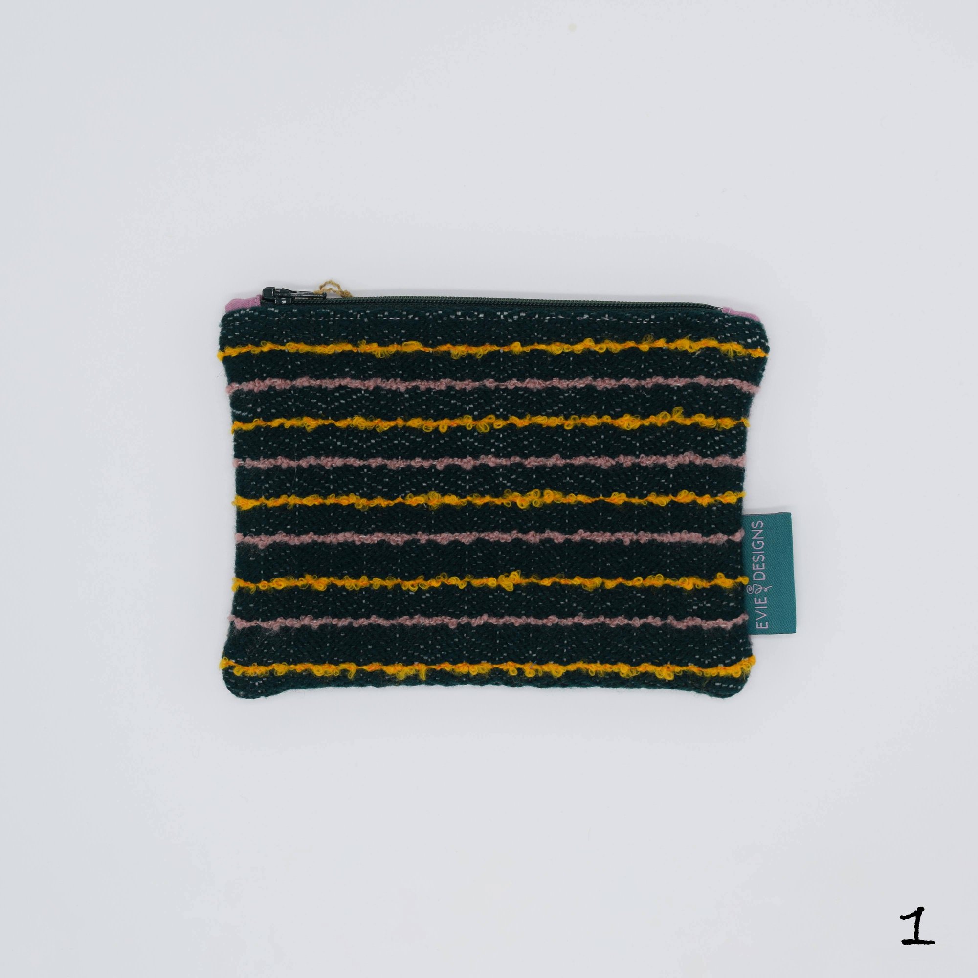 A selection of handmade purses woven on my table loom using 100% lambswool, British wool and remnant fancy yarns. Each purse is unique, lined with 100% cotton fabric and backed with a robust upholstery fabric.
